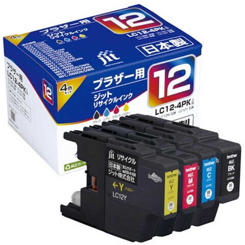プリンタインクはジットのリサイクルインクがおすすめ!なぜなら●●●3つの嬉しいメリット!(1)ISO9001を取得している国内工場で生産しているから 高品質 (2)純正品カートリッジを再利用することにより 低価格 (3)購入後サポートや、プリンタ保証もあって 安心 低価格と高品質を両立!さらに、保証を付けたのがジットのリサイクルインクです! 対応インクカートリッジ ブラザー brother LC12-4PK(4色パック)