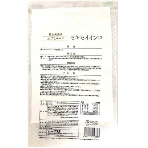 仕様3:原材料2:ビタミン類(A、D3、E、B1、B2、B6、B12、D-パントテン酸カルシウム、ニコチン酸)、ミネラル類(硫酸マンガン、硫酸亜鉛、硫酸銅、硫酸マグネシウム、硫酸鉄、塩化コバルト)、アミノ酸類(塩化コリン、メナジオンK3)、香料、アワ、ヒエ、キビ、カナリアシード、オーツ