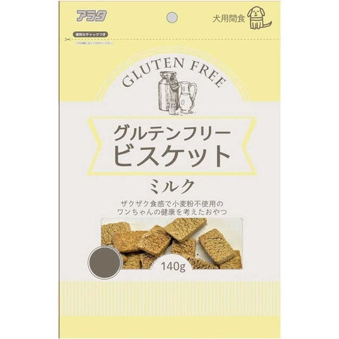 ザクザク食感で小麦粉不使用・グルテンフリーのワンちゃんの健康を考えたビスケットです。やさしい味わいのミルク味。