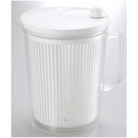 仕様1:本体サイズ(幅×高さ×奥行)mm:190×170×157mm素材:フタ・バスケット/ポリプロピレン、本体透明部分/スチロール樹脂、ハンドル内ねじ/ステンレス重量(g):525g