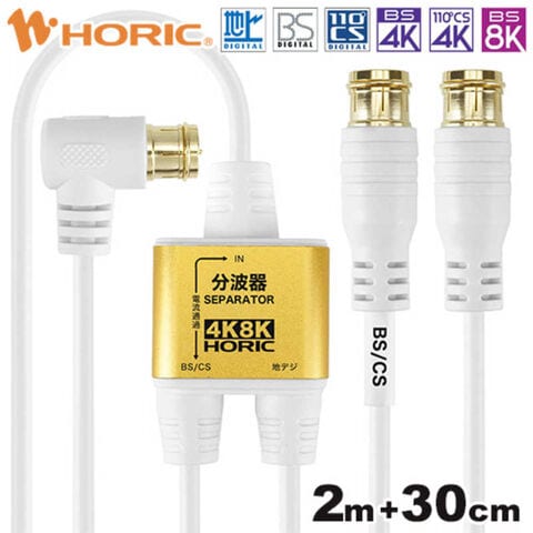 ホーリック アンテナ分波器 極細ケーブル一体型 2m/30cm ホワイト 差込式コネクタ AE-329PW