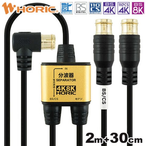 ホーリック アンテナ分波器 極細ケーブル一体型 2m/30cm ブラック 差込式コネクタ AE-330PBのレビュー