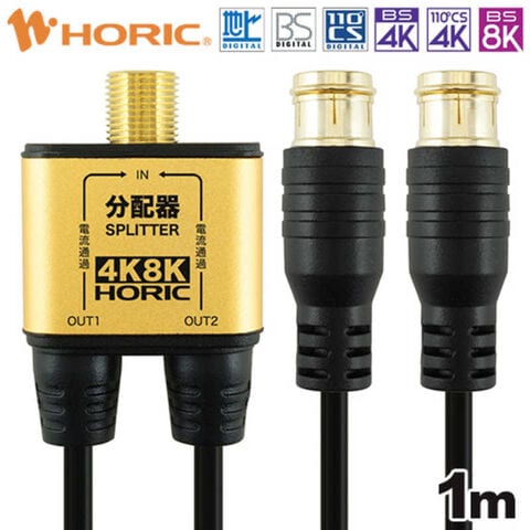 ホーリック アンテナ分配器 極細ケーブル一体型 1m ブラック 差込式コネクタ AP-335PB
