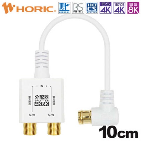 ホーリック アンテナ分配器 極細ケーブル一体型 10cm ホワイト AP-657WH