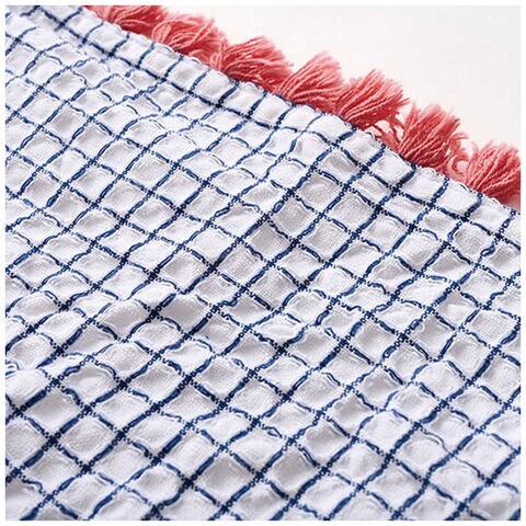 ●存在感のあるフリンジがアクセントのワッフルクロス。