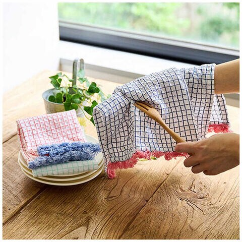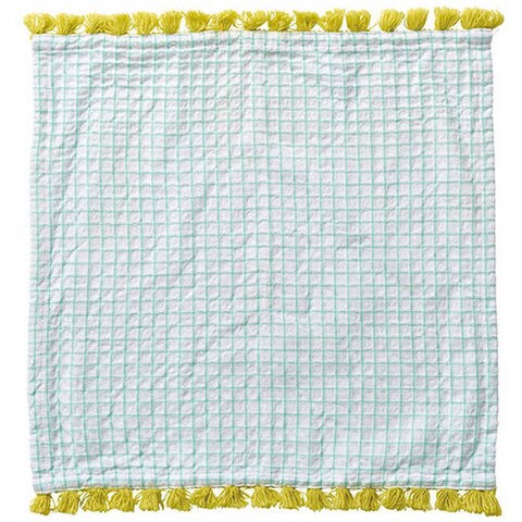 ●存在感のあるフリンジがアクセントのワッフルクロス。