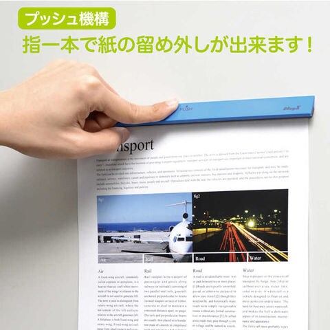 ●PUSHと書かれた部分を押すと、掲示物をワンプッシュで留め外しが可能です。