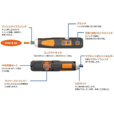 ネジに押し込むだけで、ネジ締めが行える直感操作の新しいタイプの電動ドライバー。