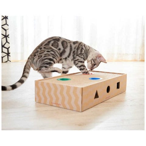 穴の中のボールに夢中、五感を刺激する爪とぎ付きおもちゃ
