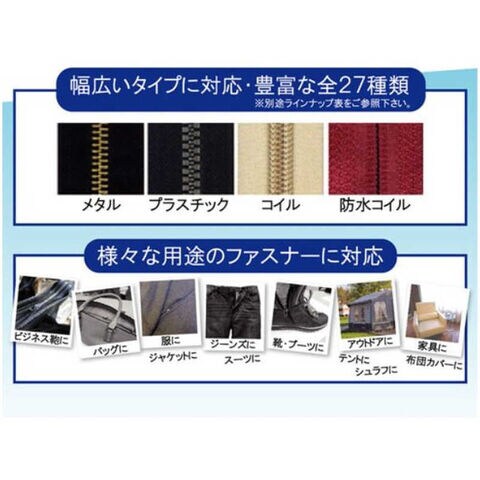 ジッパーが開かない、閉まらない、スライダーが動かない、プルタブの付け根が折れた等、チャックの故障を解決します。