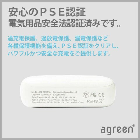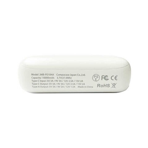コンピューケースジャパン 名刺サイズパワフル容量10000mAhモバイルバッテリー PD104Aシリーズ ホワイト JMB-PD104A-WH