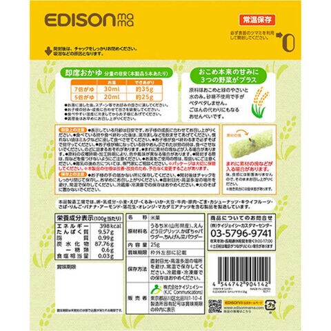 エジソン販売 くちどけおこめぼー 緑のやさい 25g