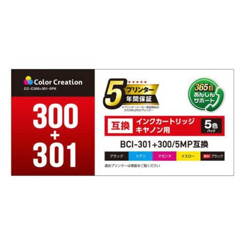 対応カートリッジ:キヤノン BCI-301+300/5MP、BCI-300PGBK、BCI-301BK、BCI-301C、BCI-301M、BCI-301Y