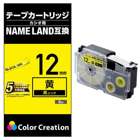 カラークリエーション ネームランド用互換テープ/黄色/黒文字/8m/12mm幅 [CTCCXR12YW] CTC-CXR12YW