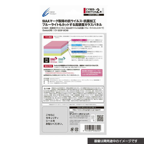 サイバーガジェット Switch2用高硬度ガラスパネル[SIAA抗ウイルス&抗菌+ブルーライトカットタイプ] CY-S2GP-BCAB
