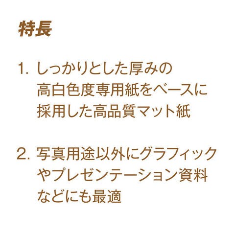 ●しっかりとした厚みの高白色度専用紙をベースに採用した高品質マット紙。