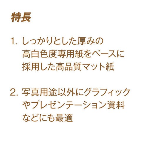 ●しっかりとした厚みの高白色度専用紙をベースに採用した高品質マット紙。
