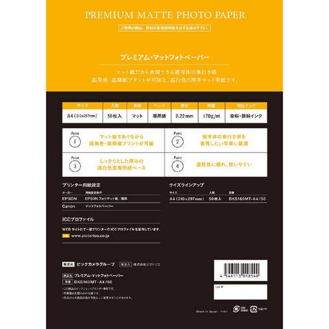 ピクトリコ プレミアム・マットフォトペーパー[マット]0.22mm(A4サイズ・50枚) インクジェット用紙 [BKS160MTA450] BKS160MT-A4/50