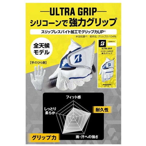 ブリヂストン ゴルフグローブ ULTRA GRIP [右手着用(左打ち用) /25cm] ホワイト×ブルー GL2506