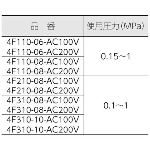 使用流体:空気、流体温度:-10~60℃(凍結なきこと)、使用圧力:0.1~1MPa