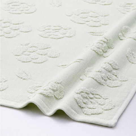 今治タオルならではの、無撚糸のふわふわ感とガーゼのさらっとした肌触りを同時に楽しめるウォッシュタオルです。シンプルながらも可愛らしい花柄がデザインされており、優しい風合いに癒されます。