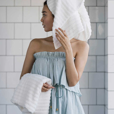 お風呂で温まった体を心地よくクールダウンしてくれるベアトップドレス。