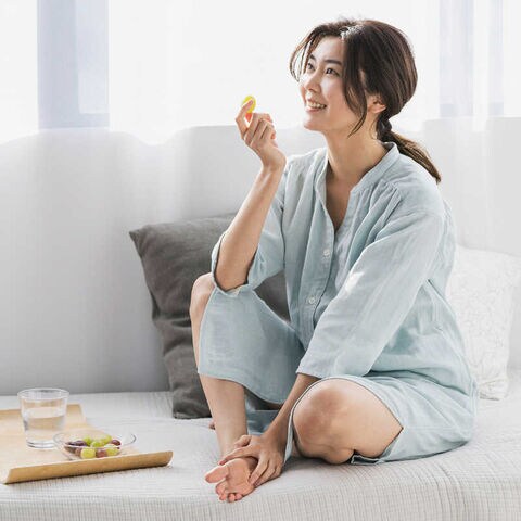 肌に触れるガーゼ素材が気持ちよく女性らしいシルエットで、着るだけで贅沢な時間を過ごせる1枚。