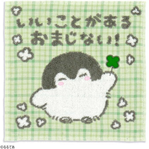 タオル美術館 コウペンちゃん おまじない タオルハンカチ(約25×25cm) グリーン