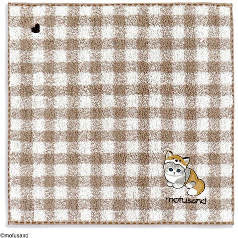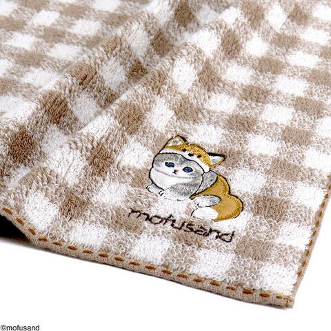 タオル美術館 ギンガムステッチ タオルハンカチ ベージュ mofusand