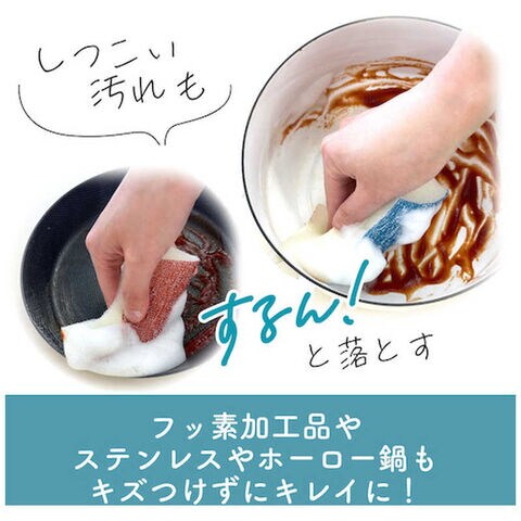 ●新開発、キクロンオリジナルの特殊加工したザラザラ素材が、キズをつけずに汚れをかき取ります。