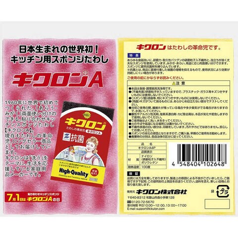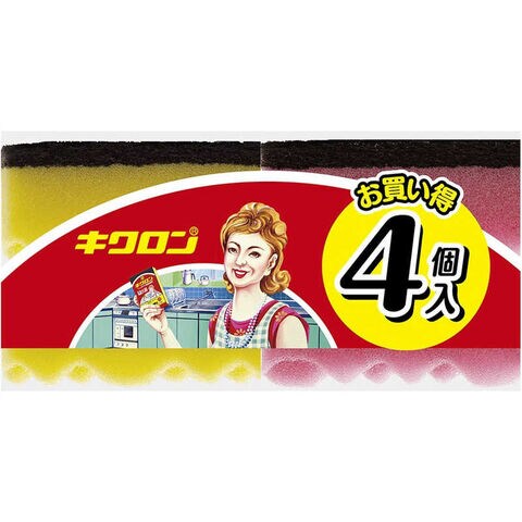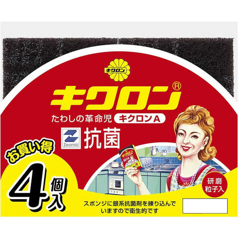 1960年に発売した洗うと磨くを兼ね備えた貼り合わせたわし「キクロンA」が4個パックになって新発売。