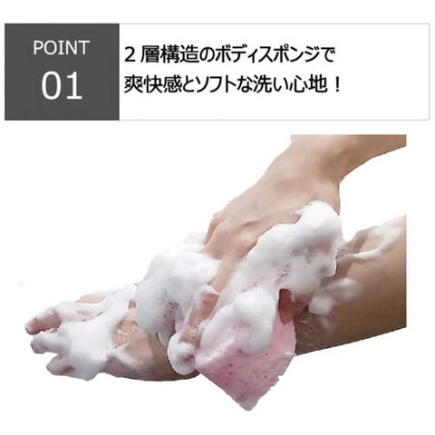 ●泡立ちが良くソフトな肌当たりのスポンジを採用しています。