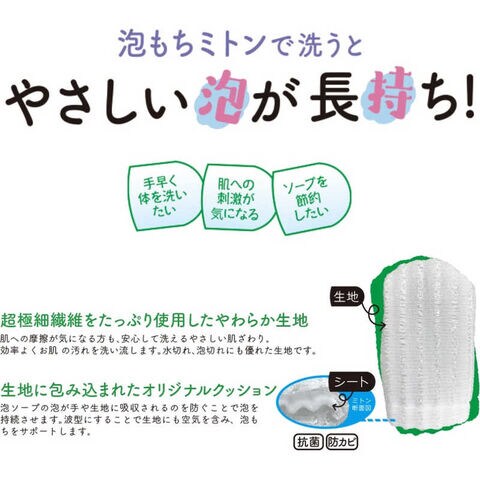 効率よくお肌の汚れを洗い流し、水切れ、泡切れにも優れた生地です。