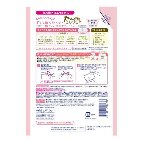 ●カサカサお肌をミルク入浴液がやさしく包み、しっとり、つるんと潤う。◎新生児による入浴テスト済 浴用化粧料/保湿成分配合/弱酸性/アルコールフリー/パラベンフリー/色素フリー/ほのかに広がる和らぐサクラの香り/ピュアホワイト色の湯(にごりタイプ)