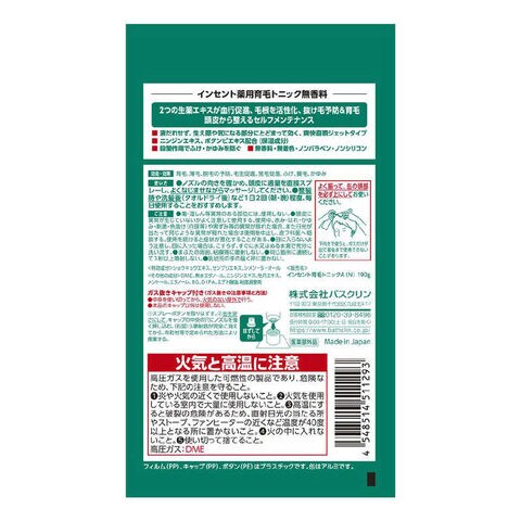 バスクリン INCENT(インセント) 薬用育毛トニック 無香料 190g (医薬部外品)