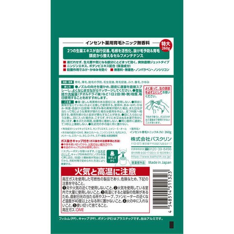 バスクリン INCENT(インセント) 薬用育毛トニック 無香料 特大 260g (医薬部外品)