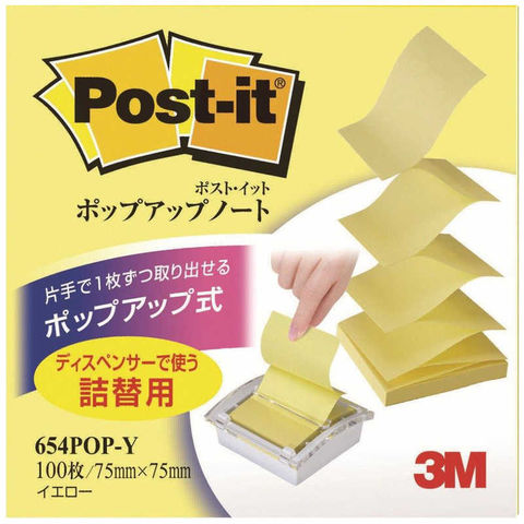●ディスペンサーやボックスから、片手で一枚ずつ取り出せる、ポップアップ式のポスト・イット(R)製品です。