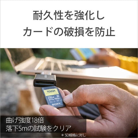 忙しく、スピードが求められる現場、山などハードな現場での撮影時に安心して使用できることを目指したソニーのタフ仕様SDメモリーカードは従来品から増した強度・防水・防塵性といったスペックを兼ね備え、様々なトラブルによる破損を防止。大切なデータを守ります。