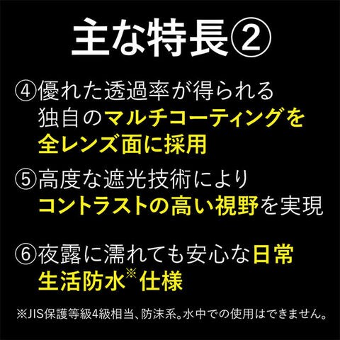 高度な遮光技術によりコントラストの高い視野を実現。