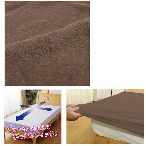 小栗 「ボックスシーツ兼ワンタッチシーツ」のびのびぴったりパイルシーツ(セミシングル/シングルサイズ兼用/ブラウン)
