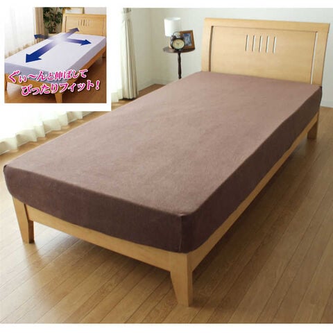 小栗 「ボックスシーツ兼ワンタッチシーツ」のびのびぴったりパイルシーツ(セミダブル/ダブルサイズ兼用/ブラウン)