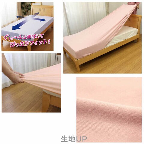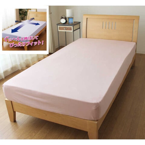 小栗 「ボックスシーツ兼ワンタッチシーツ」のびのびニット素材ベッドシーツ(セミダブル/ダブルサイズ兼用/ピンク)