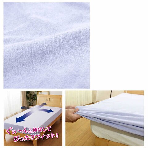 小栗 「ボックスシーツ兼ワンタッチシーツ」のびのびぴったりパイルシーツ(ワイドダブル/クイーン/キングサイズ兼用/サックス)