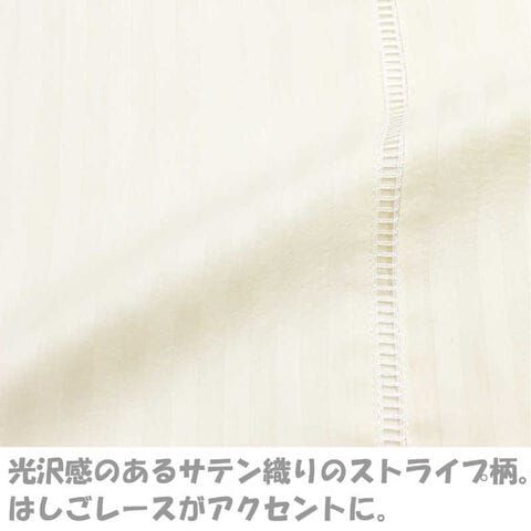 小栗 枕カバー inico(イニコ)「アデール」綿100% サテン織ストライプ 片サイドはしごレース付き 上品な光沢 洗える アイボリー [43×63cm枕用 /ファスナータイプ] IN61550-07 MerryNight