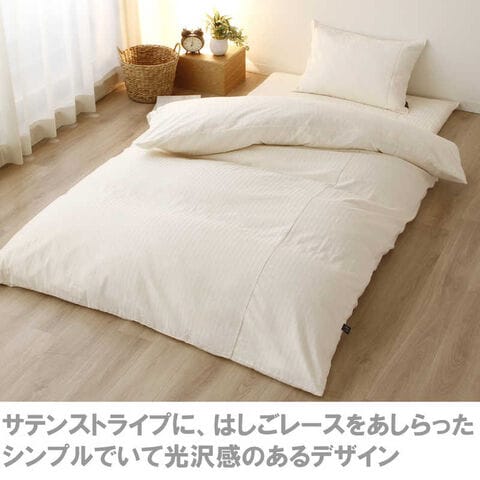 素材:綿100% ファスナー式 皆さんの睡眠を『inicoシリーズ』でにっこりに♪ 手触りの良い綿100%のサテンストライプに梯子レースをあしらった高級感のあるデザインです!シンプルかつちょっと贅沢にお部屋をコーディネートできるのでオススメです!!