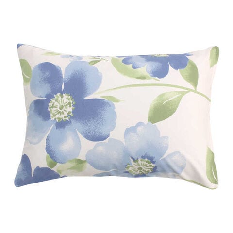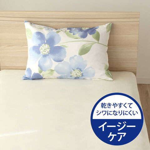 小栗 メリーナイト 枕カバー 「水彩フラワー」 ブルー 約43×63cm ファスナー式 まくらが入れやすい 洗える 速乾 シワになりにくい サックス