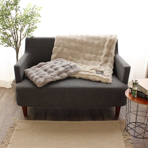 なみふわで肌触りの良いラビットファーのあったかい合わせ毛布。落ち着いたグレーとベージュの2色展開でオススメです。