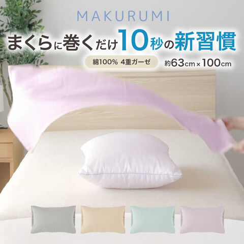 小栗 (枕カバー)くるんと巻くだけ簡単枕カバー まくるみ 入眠スイッチ 63×100cm 4重ガーゼ ベージュ NS631003-96