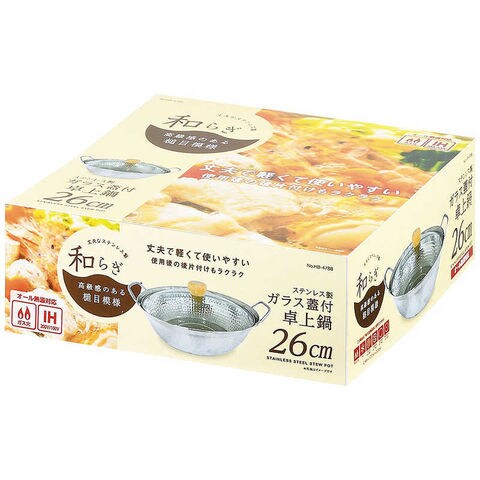 パール金属 和らぎ ステンレス製ガラス蓋付卓上鍋26cm [HB4788] HB-4788