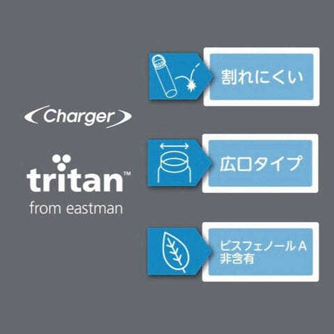 軽くて割れにくい安心素材のトライタン製!ファストチャージャーアクアボトルガラスのような透明感があり、ペットボトルのような柔軟性で割れにくい本体素材です。
